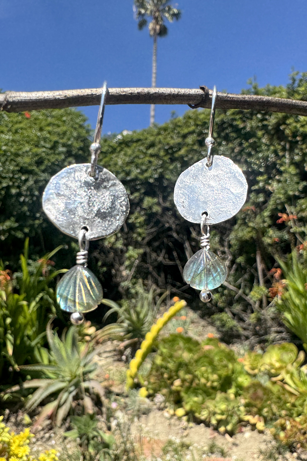 Labradorite Seashell Silver Coin Earrings - Miche McClendon